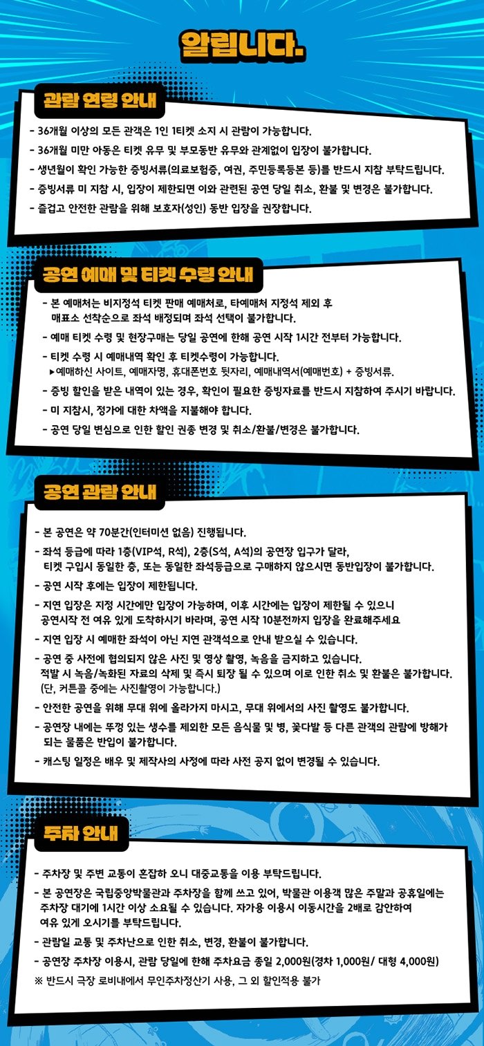 ※ 본 공연은 공연 당일 현장 도착 순으로 입장이 가능합니다. 예매 시 참고부탁드립니다.