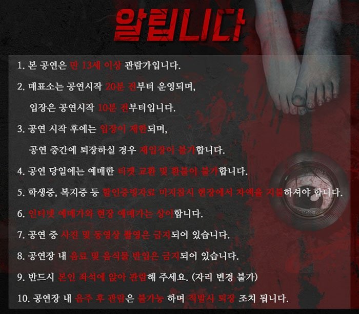 ※ 본 공연은 공연 당일 현장 도착 순으로 입장 및 착석이 가능합니다. 예매 시 참고부탁드립니다.