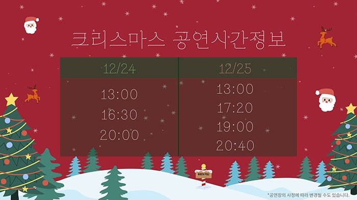 * 12/24(수) : 13시 / 16시 30분 / 20시