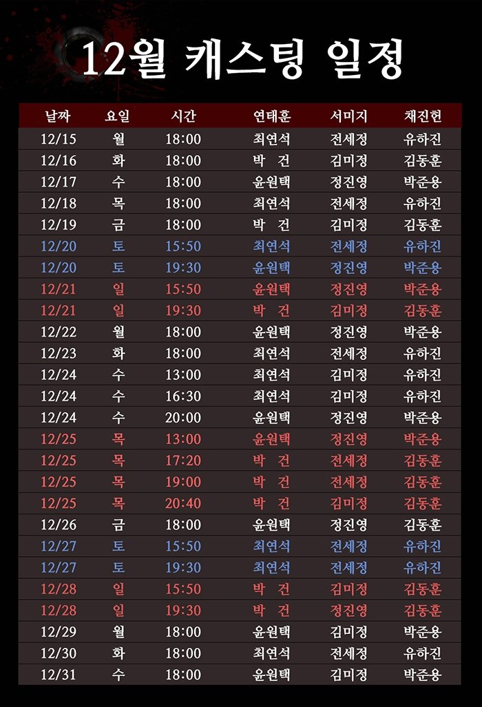 * 12/25(목) : 13시 / 17시 20분 / 19시 / 20시 40분