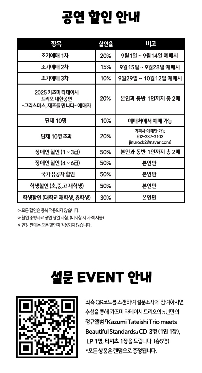 2025년 카즈미 타테이시 트리오 내한공연 - 크리스마스, 재즈를 만나다- 예매자 (20%할인) | 52,800원 | |