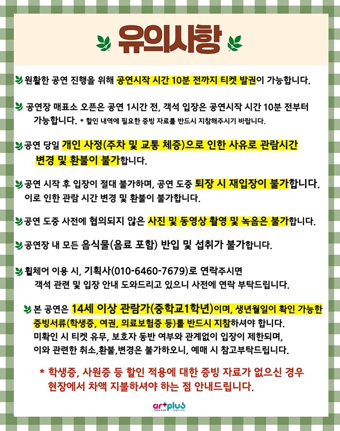 주 최 / 주 관 : 주식회사 아트플러스씨어터