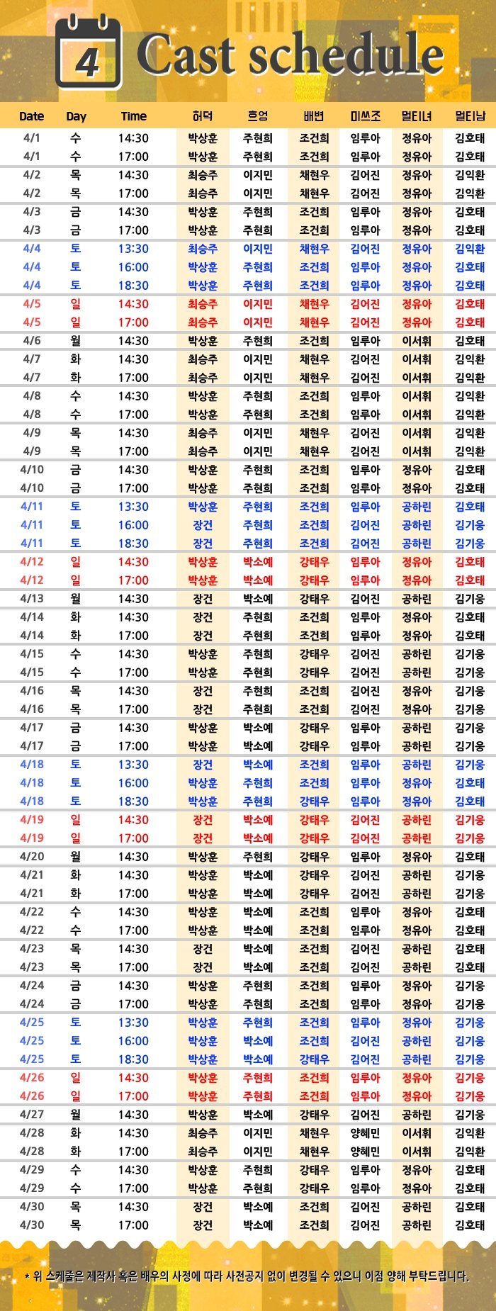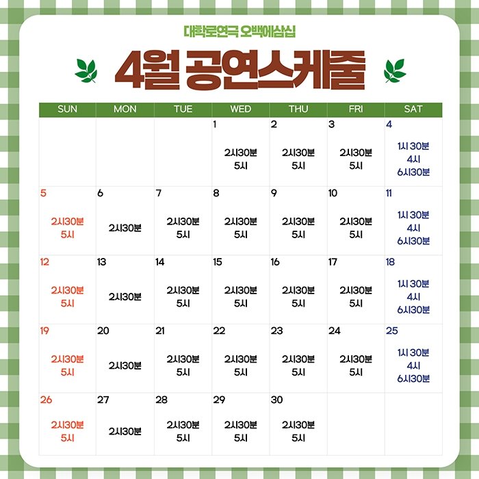 토 13:30, 16:00, 18:30