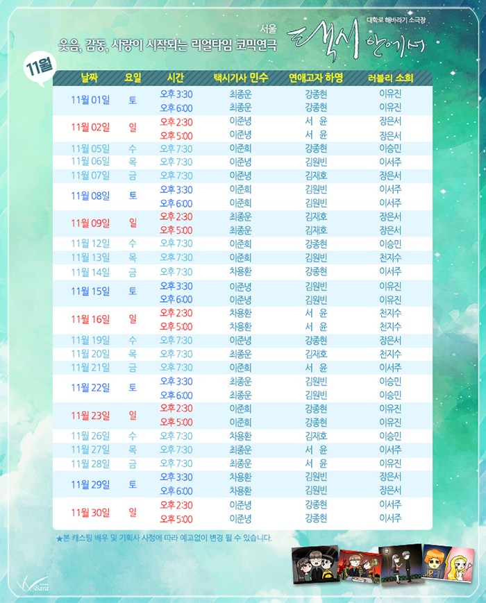 | 주최 / 기획 | 극단바라 | ||||||||||||