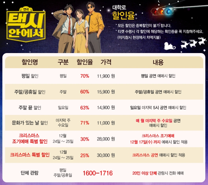 | 크리스마스 조기예매 특별할인 (12,000원할인) | 28,000원 | |