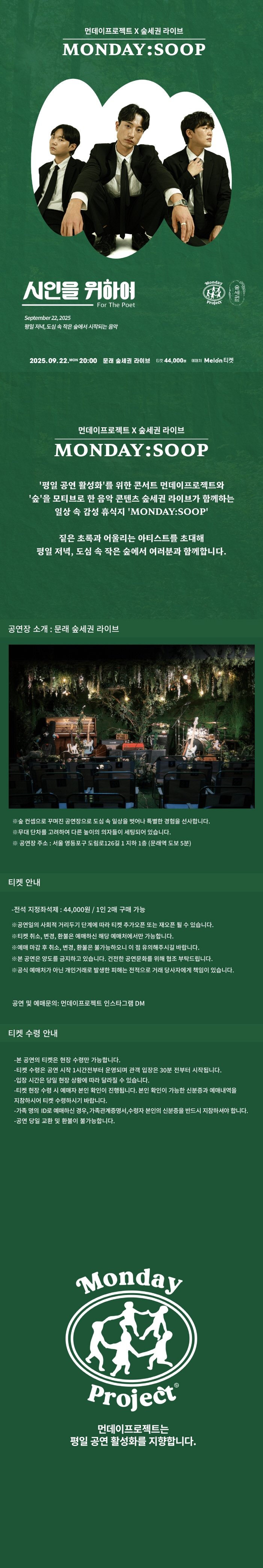 인증예매먼데이프로젝트X숲세권 MONDAY:SOOP [시인을 위하여 단독 콘서트]
