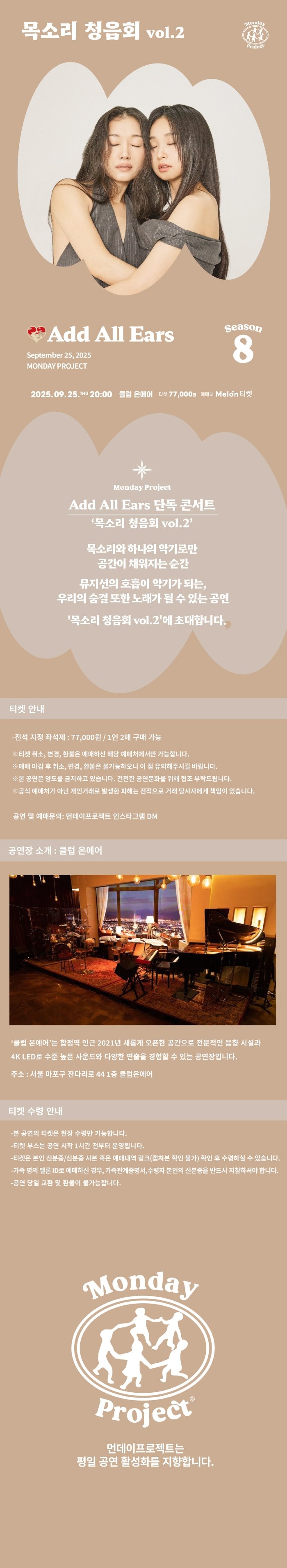 인증예매먼데이프로젝트 시즌8 [Add All Ears(에드올이얼스) 단독 콘서트 ‘목소리 청음회 vol.2’]