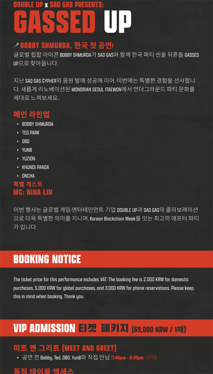 | 주최 / 기획 | 주식회사 새드가스 | ||||||||||||