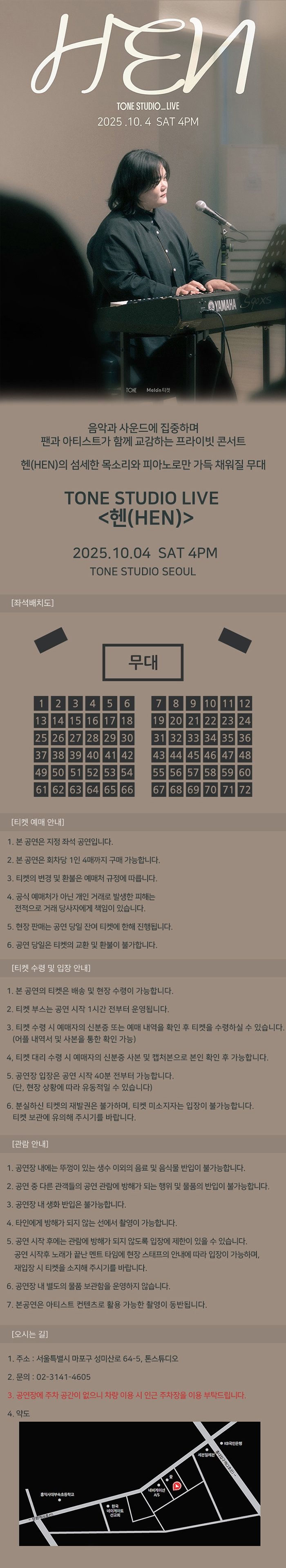 헨(HEN)의 섬세한 목소리와 피아노로만 가득 채워질 무대