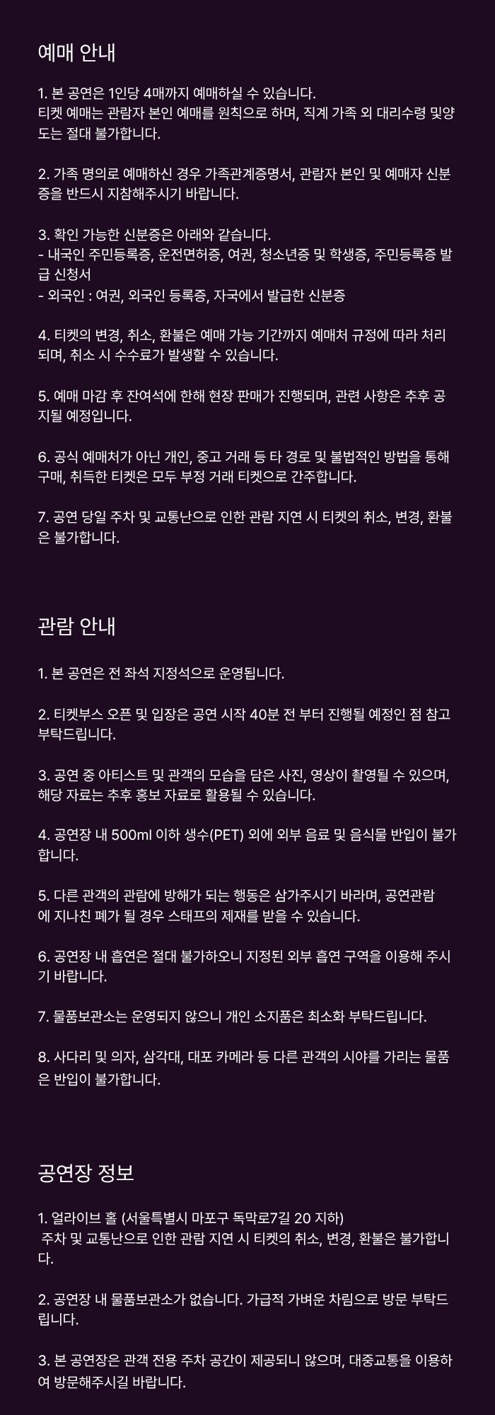 ※ 티켓오픈 : 2025년 9월 10일(수) 오후 8시