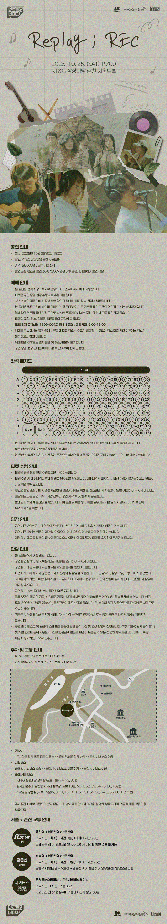 | 이용가능 장소 | KT&G 상상마당 춘천 사운드홀 | ||||||||||||