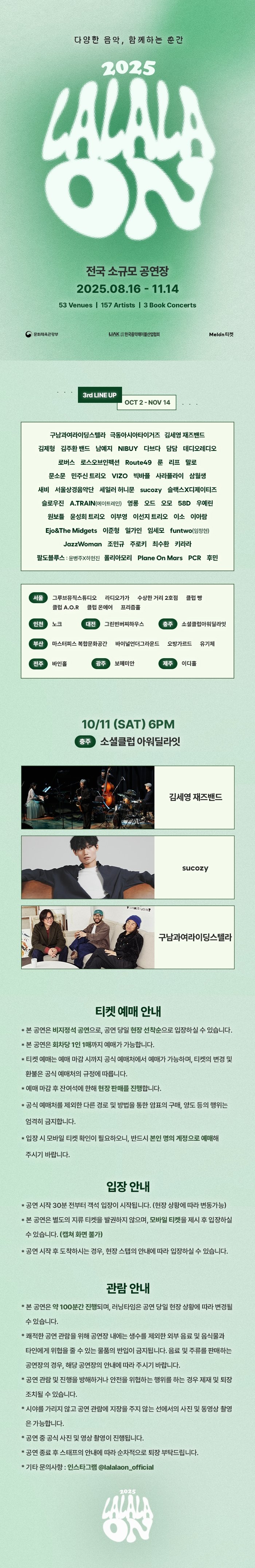 53개의 공연장, 157팀의 아티스트, 그리고 3번의 북콘서트가 함께하는 2025 라라라온