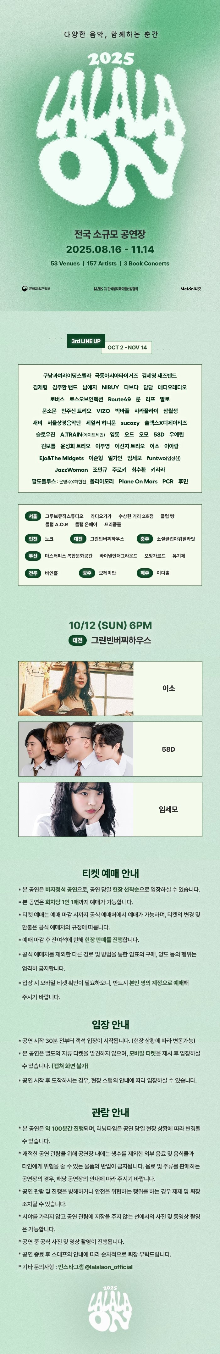 53개의 공연장, 157팀의 아티스트, 그리고 3번의 북콘서트가 함께하는 2025 라라라온