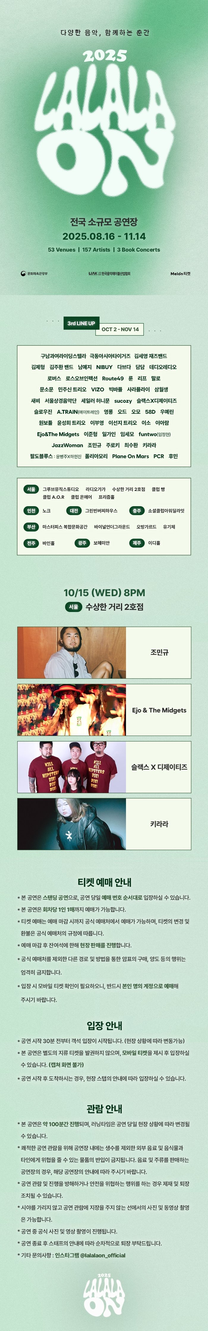 53개의 공연장, 157팀의 아티스트, 그리고 3번의 북콘서트가 함께하는 2025 라라라온