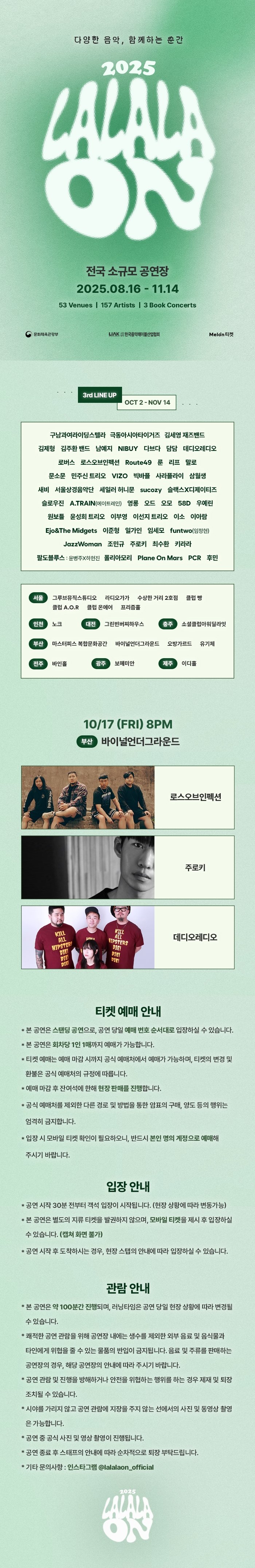 53개의 공연장, 157팀의 아티스트, 그리고 3번의 북콘서트가 함께하는 2025 라라라온