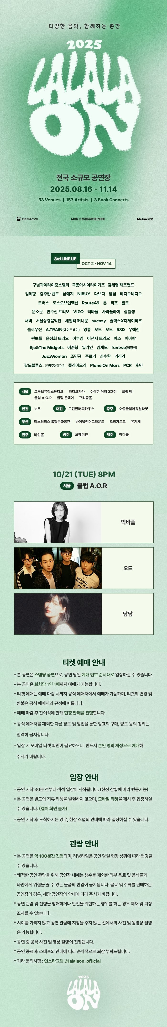 53개의 공연장, 157팀의 아티스트, 그리고 3번의 북콘서트가 함께하는 2025 라라라온