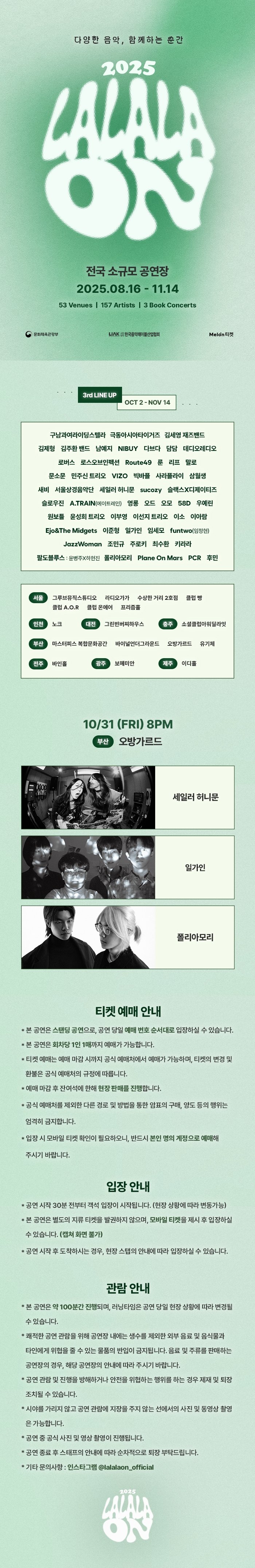 53개의 공연장, 157팀의 아티스트, 그리고 3번의 북콘서트가 함께하는 2025 라라라온