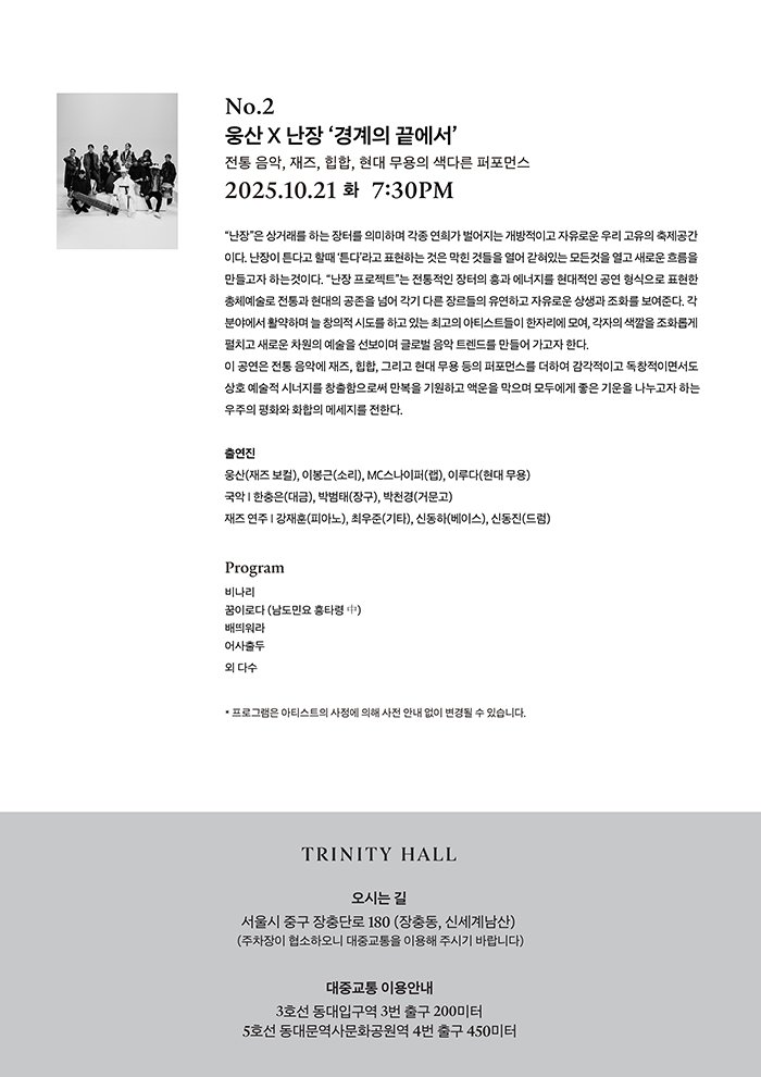 · 프로그램은 아티스트의 사정에 의해 사전 안내 없이 변경될 수 있습니다.