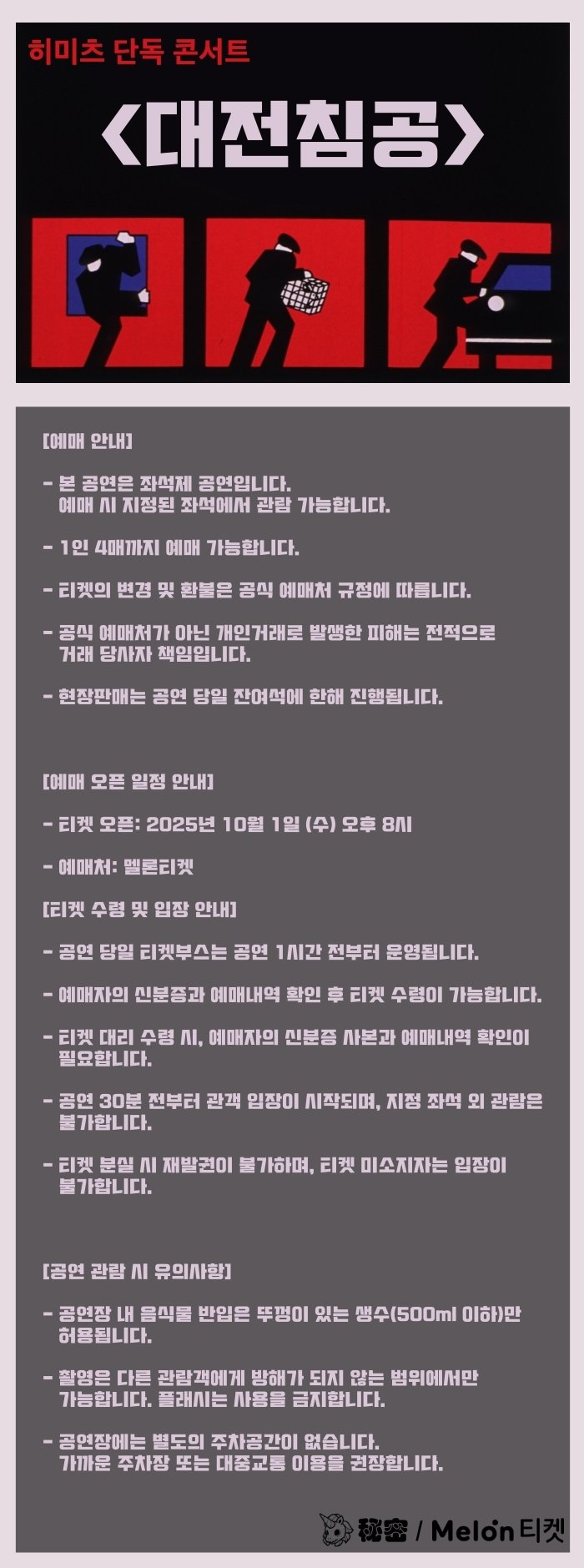 * 멜론티켓 이용약관 제19조에 따라, 부정한 방법으로 예매 하거나 관람목적이