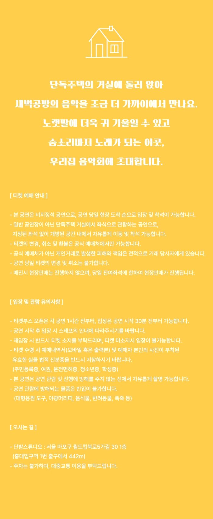 ※ 본 공연은 공연 당일 현장 도착 순으로 입장 및 착석이 가능합니다. 예매 시 참고부탁드립니다.