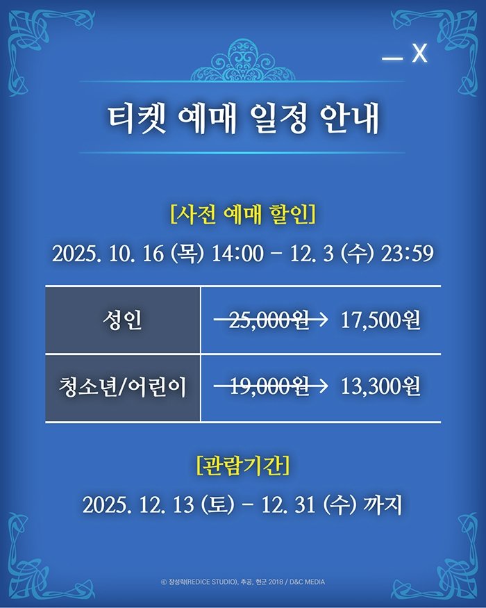 - 사전예매 판매기간 : 2025. 10. 16 (목) 14:00 ~ 12. 3 (수) 23시 59분까지
