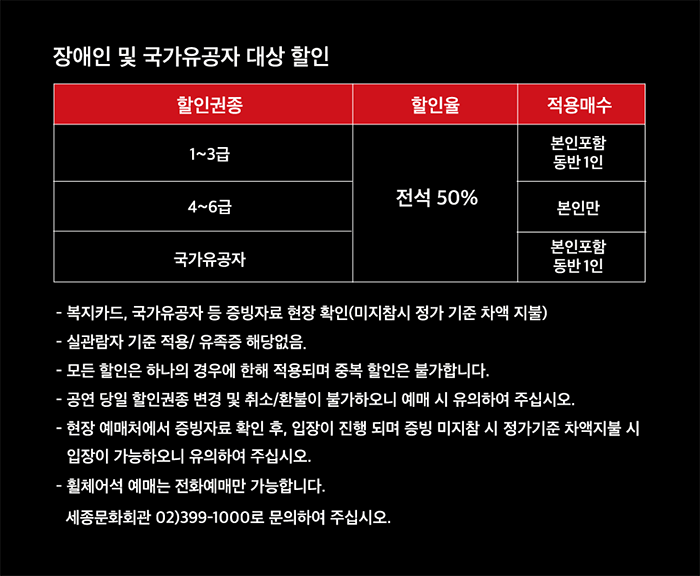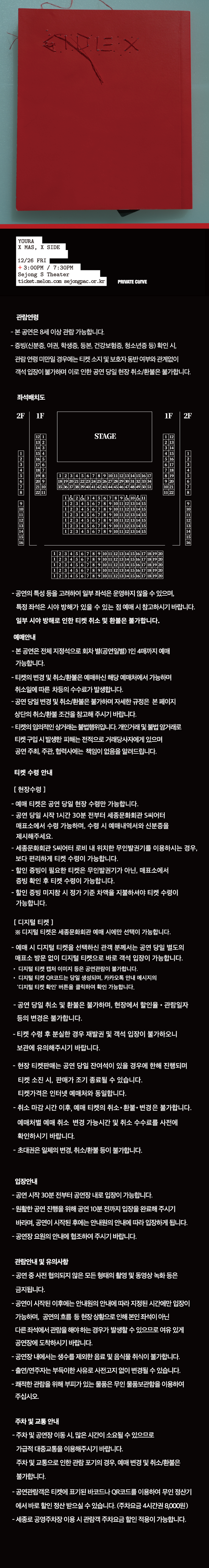 ※ 추가 회차 티켓 판매 준비를 위해 11월 6일 목요일 오전 11시부터 오후 1시 59분까지 티켓 판매가 잠시 중단될 예정입니다.