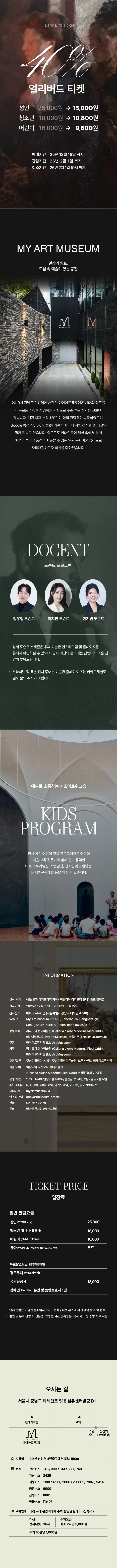 - [얼리버드 40%] 성인 15,000원 / 청소년 10,800원 / 어린이 9,600원