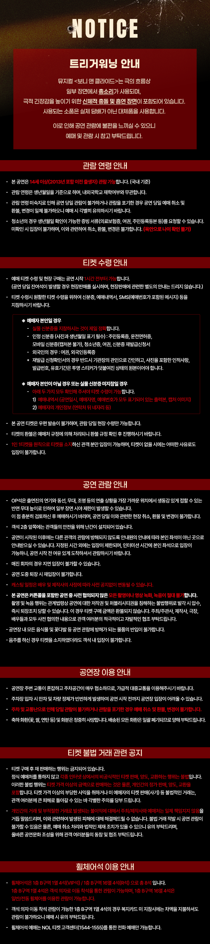 * 멜론티켓 이용약관 제19조에 따라, 부정한 방법으로 예매 하거나 관람목적이