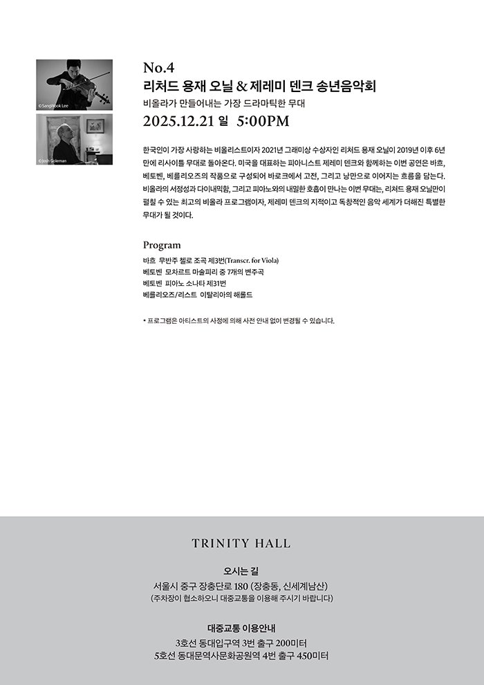 인증예매〈송년음악회〉 리처드 용재 오닐&제레미 덴크
