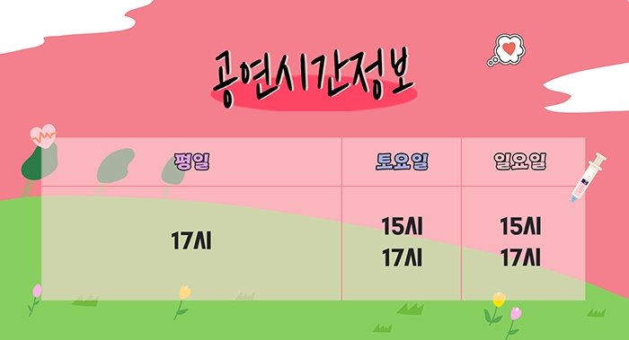 월~금 오후 5시 / 토,일 오후 3시, 5시