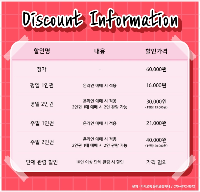 | 평일 2인권 (30,000원할인) | 30,000원 | |
