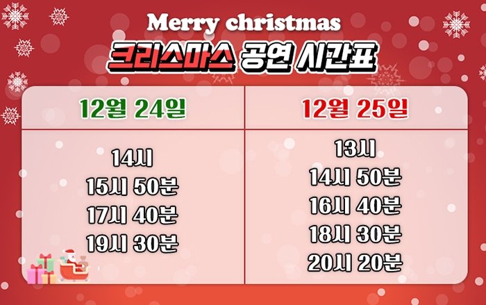* 12월 24일(수) 오후 2시, 3시 50분, 5시 40분, 7시 30분