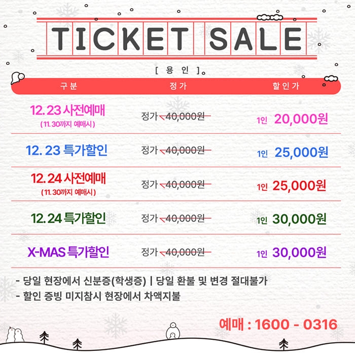 | 12.24 사전예매할인 (15,000원할인) | 25,000원 | |
