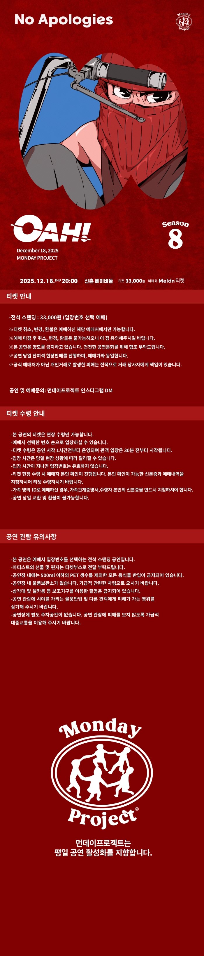 먼데이프로젝트 시즌8 : 오아!(OAH!) 앨범 발매 단독 콘서트 〈No Apologies〉