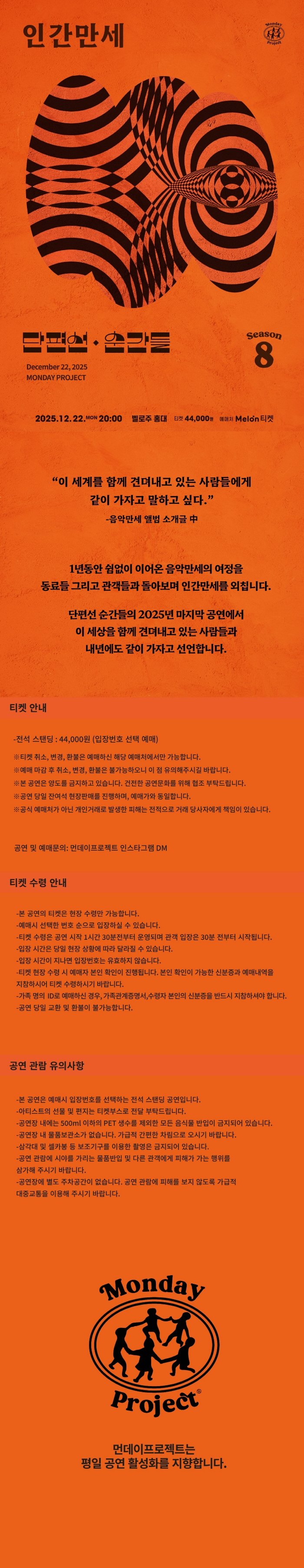 인증예매먼데이프로젝트 시즌8 : 단편선 순간들 연말 단독 콘서트 〈인간만세〉