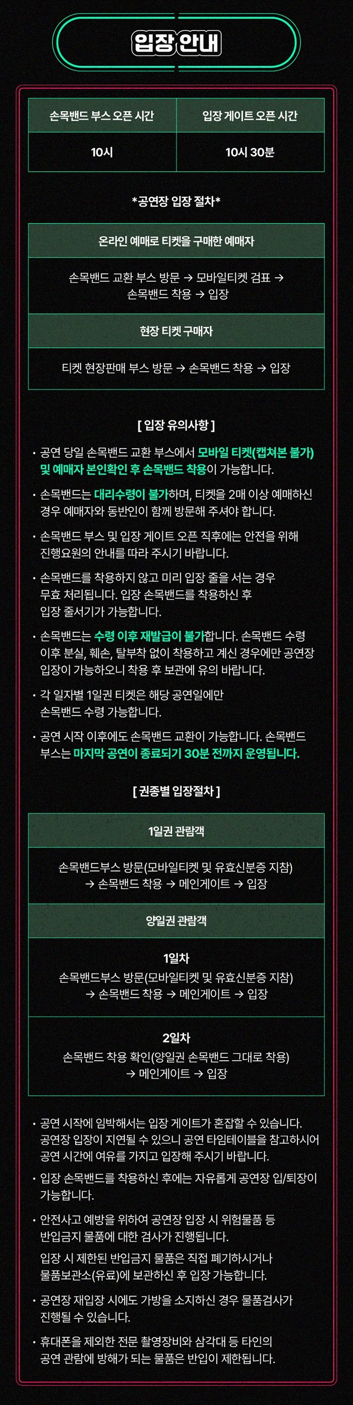 ※ 본 공연은 공연 당일 현장 도착 순으로 입장이 가능합니다. 예매 시 참고 부탁드립니다.