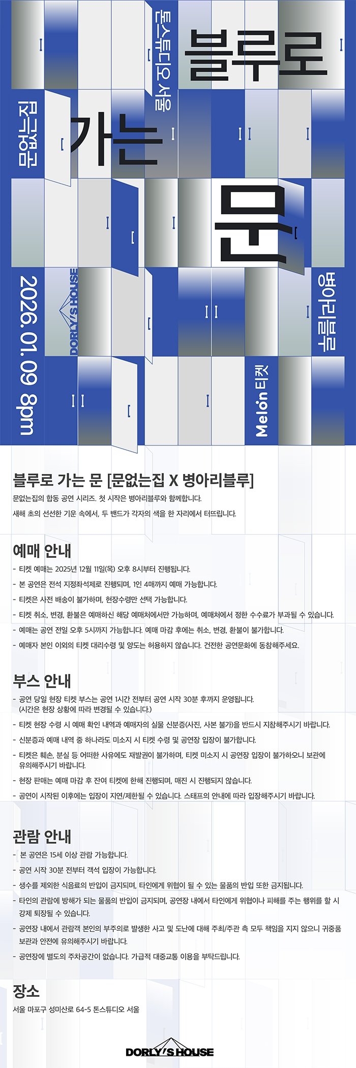 | 공연 관련 문의 | 이메일 doorlesshouse@gmail.com / 인스타그램 @doorlesshouse | ||||||||||||
