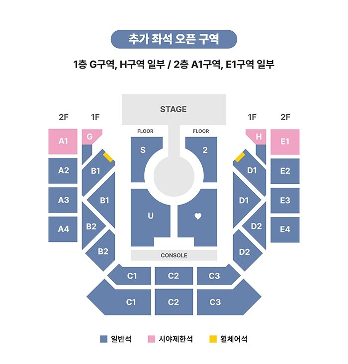 ▶추가 오픈 좌석: A1, G, H, E1구역 일부 좌석 (모든 회차 동일)