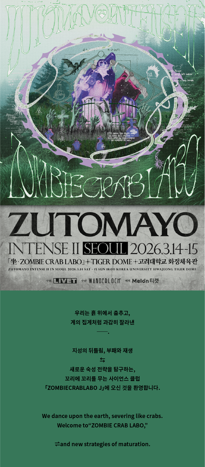 ZUTOMAYO INTENSE II「坐・ZOMBIE CRAB LABO」 in Seoul 공식 사이트