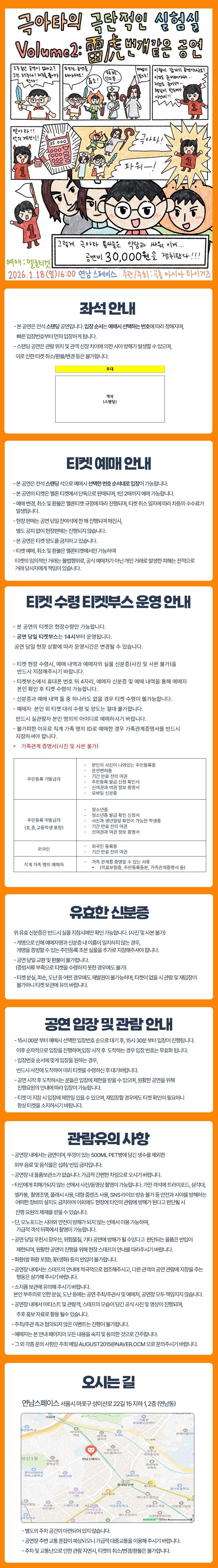 ※ 본 공연은 1월 16일(금) 오후 5시 30분 까지 예매가능합니다.