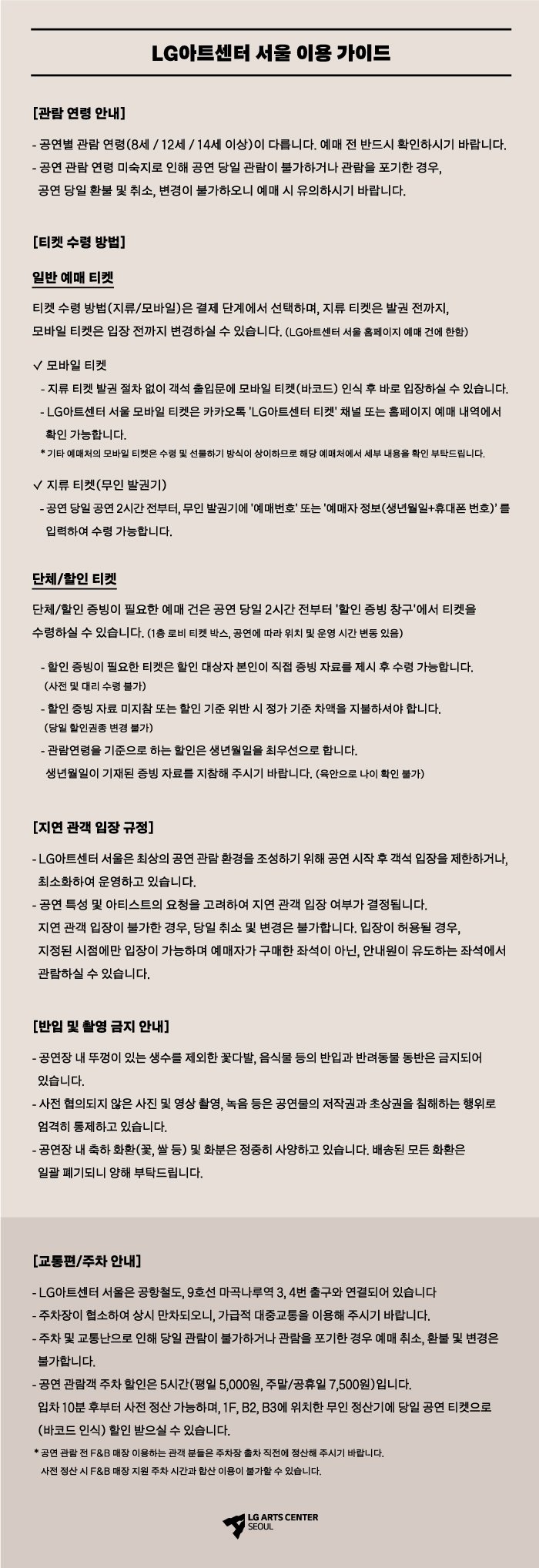 | 이용가능 장소 | LG아트센터 서울 LG SIGNATURE 홀 | ||||||||||||