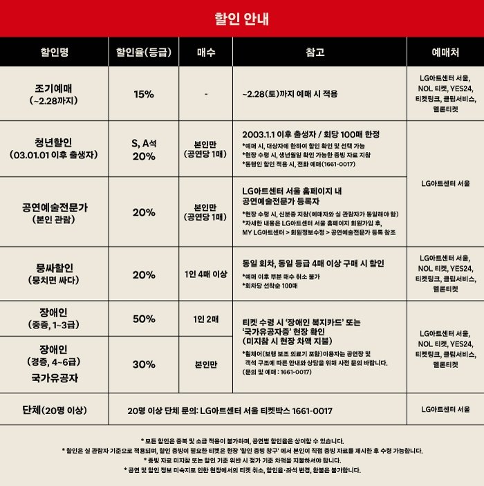 | 이용가능 장소 | LG아트센터 서울 LG SIGNATURE 홀 | ||||||||||||