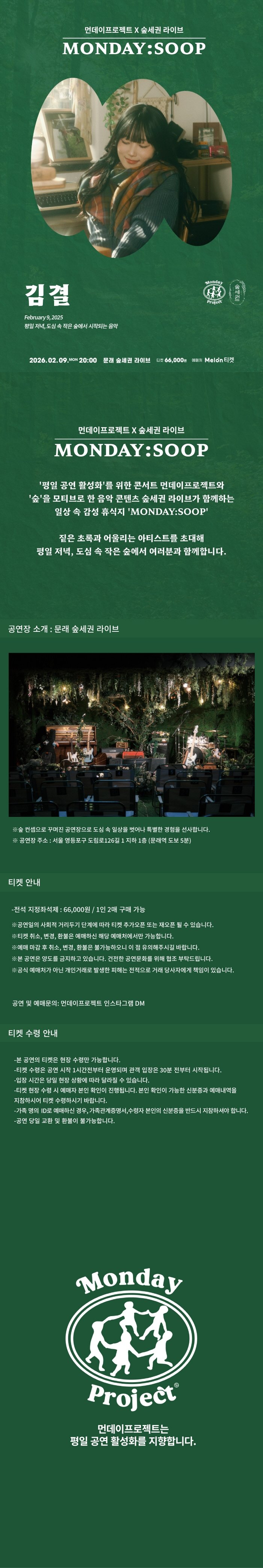 인증예매먼데이프로젝트X숲세권 MONDAY:SOOP [김결 단독 콘서트]