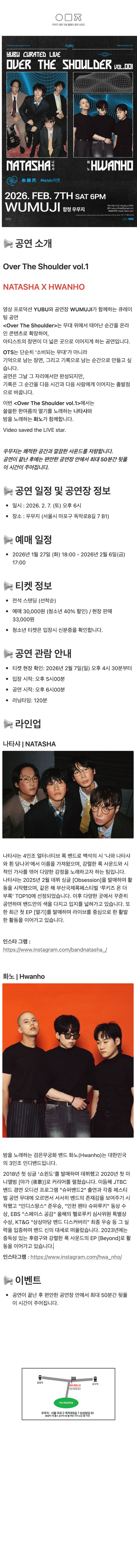 ※ 티켓오픈 : 2026년 1월 27일(화) 오후 6시