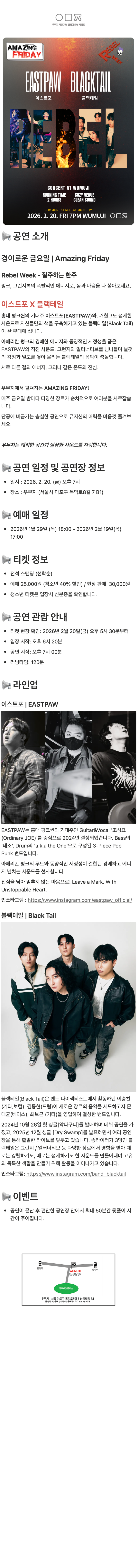 ※ 본 공연은 공연 당일 현장 도착 순으로 입장이 가능합니다. 예매 시 참고 부탁드립니다.