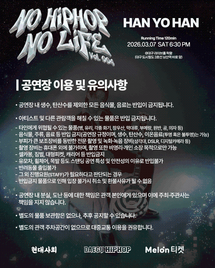 | 공연 관련 문의 | 인스타그램 @daeguhiphop | ||||||||||||