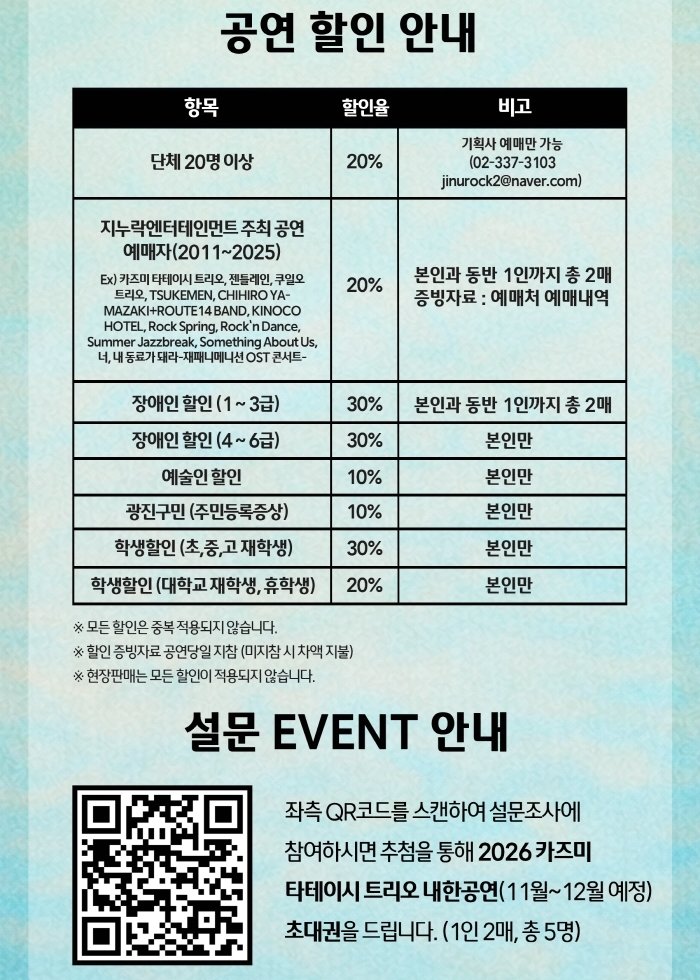 ※ 본 공연의 설문 이벤트 참여시 개인정보 수집 주체는 "지누락엔터테인먼트"입니다.