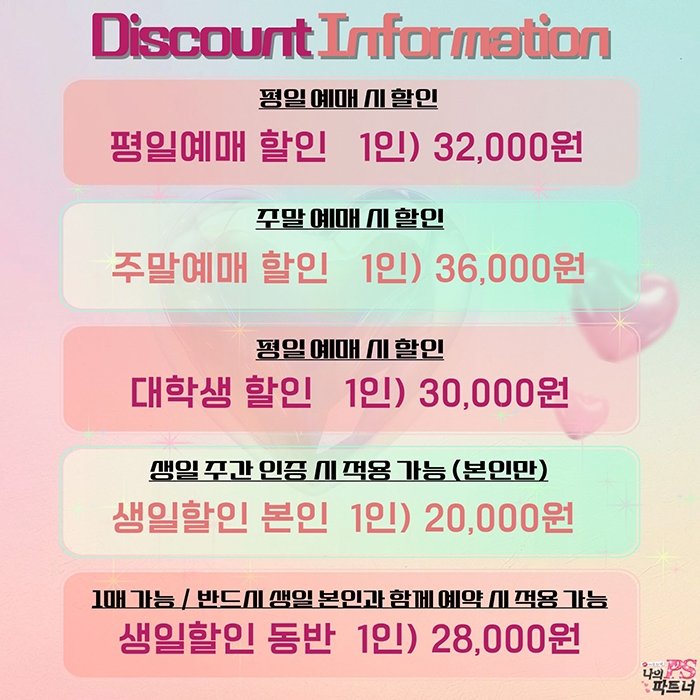 | 평일 예매할인 (20%할인) | 32,000원 | |