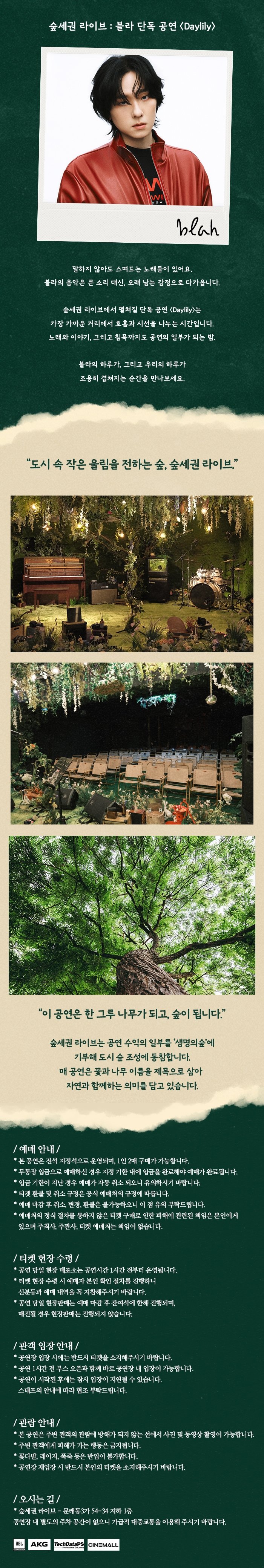 도시 속 작은 울림을 전하는 숲, 숲세권 라이브에서 열리는 블라 단독 공연.