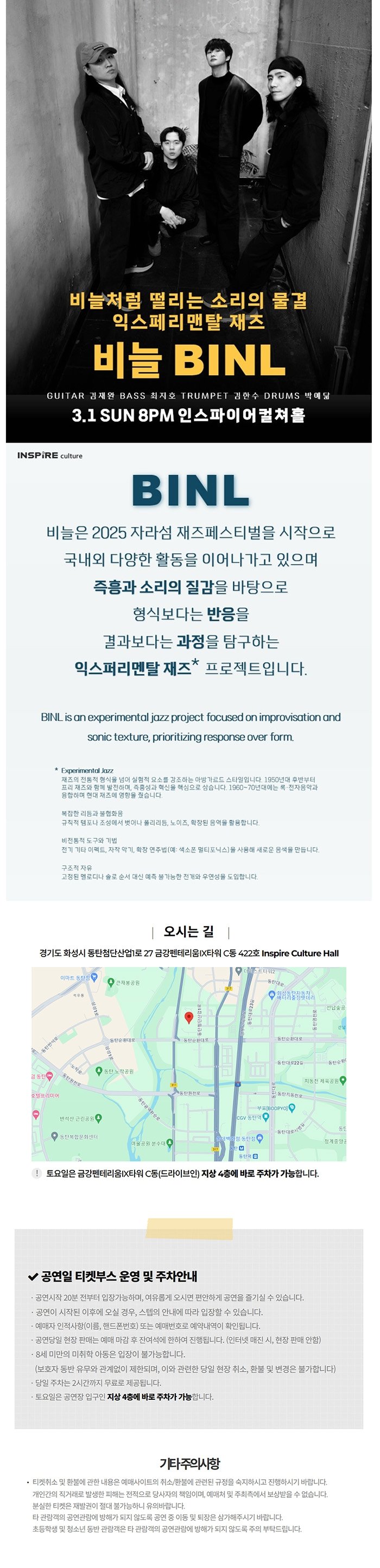 ※ 본 공연은 공연 당일 현장 도착 순으로 입장이 가능합니다. 예매 시 참고부탁드립니다.